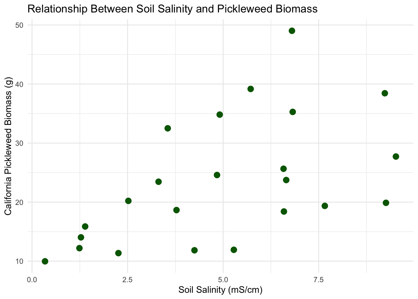 title = "Relationship Between Soil Salinity and Pickleweed Biomass" # add title