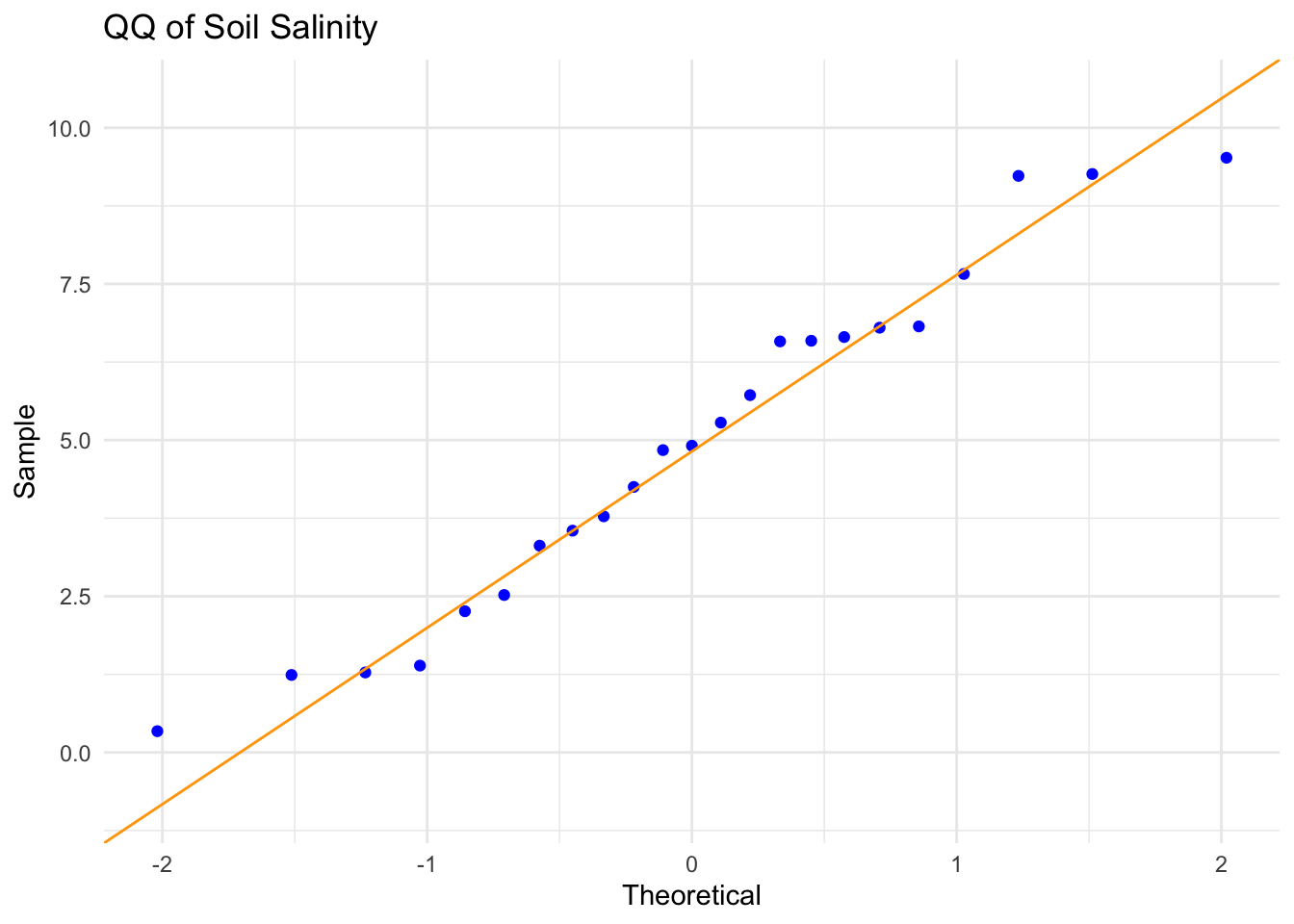 title = "QQ of Soil Salinity") + #adds graph title