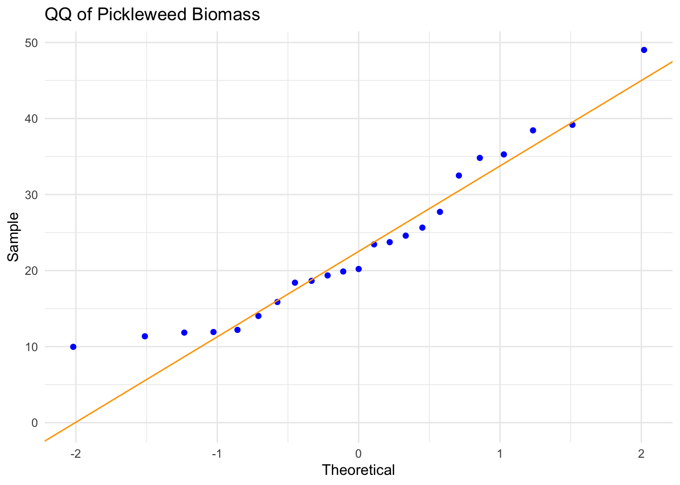 title = "QQ of Pickleweed Biomass") + # adds graph title
